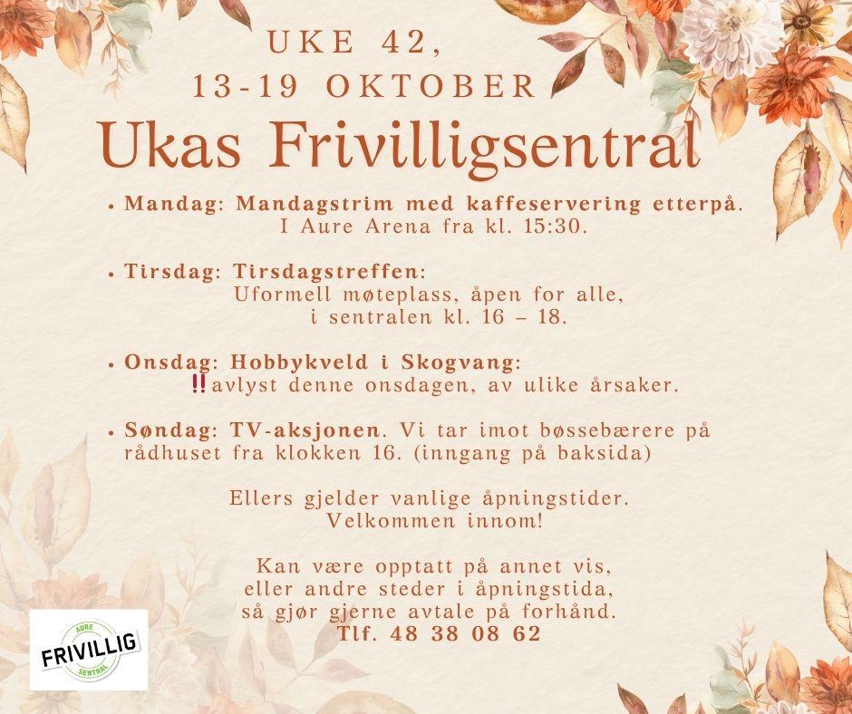 Her er plan for denne uka, uke 42, 13 - 19 oktober